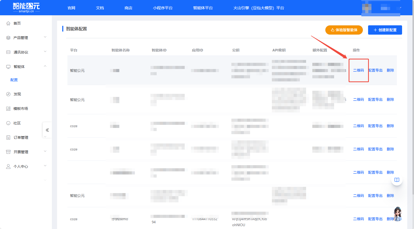 本文将介绍如何将智能体绑定到设备1、在智能公元平台上配置好智能体后,点击“二维码”按钮。 2、按照弹出窗口里的提示,打开“智能公元”微信小程序进入到设备详情页面,点击“AI智能体”菜单,扫描以下二维码绑定智能体。 🛑 如果未能找到“AI智能体”菜单,说明设备不支持。 3、绑定成功后,就可以和设备进行交流了。作者:admin 创建时间:2025-12-12 18:11最后编辑:admin 更新时间:2025-12-13 15:56